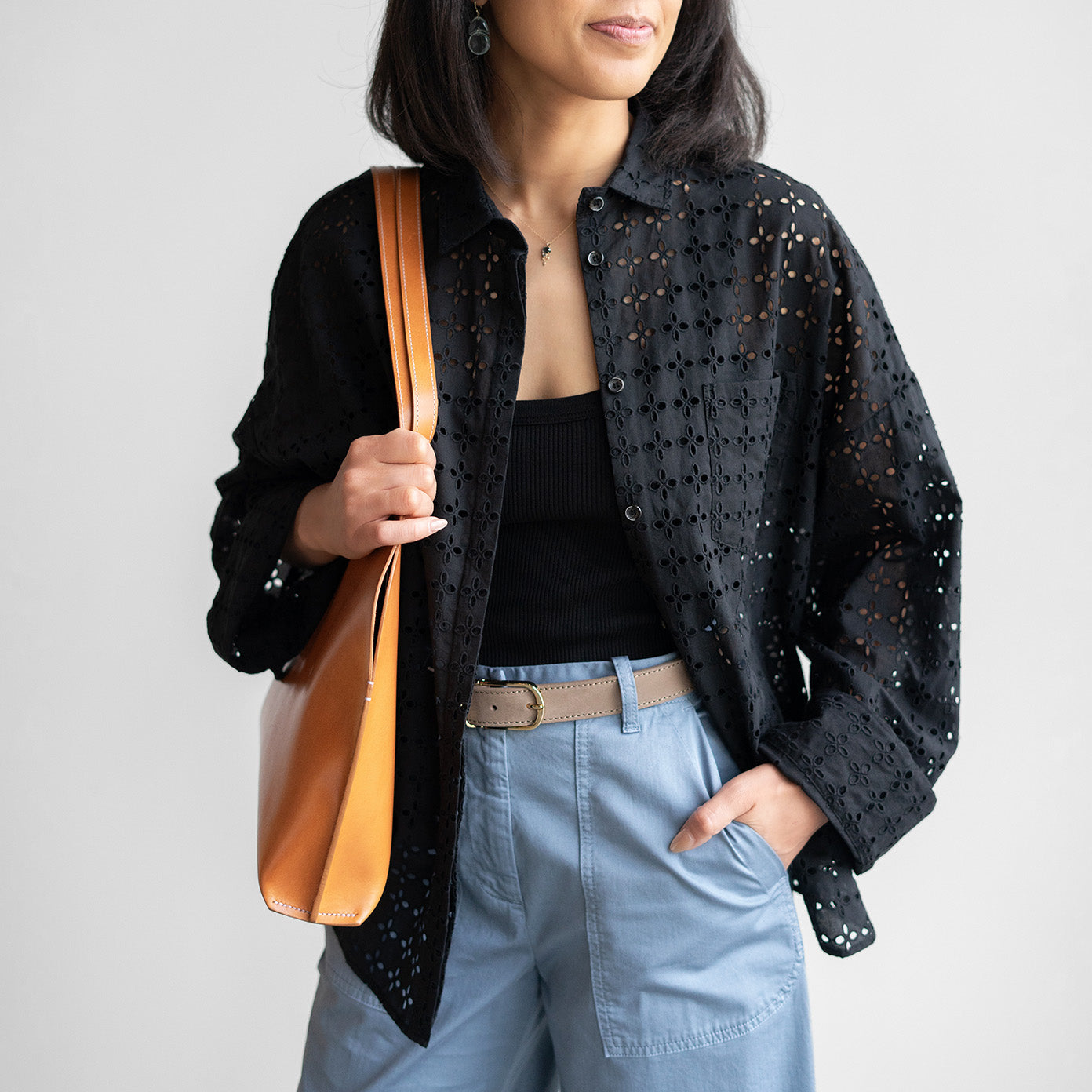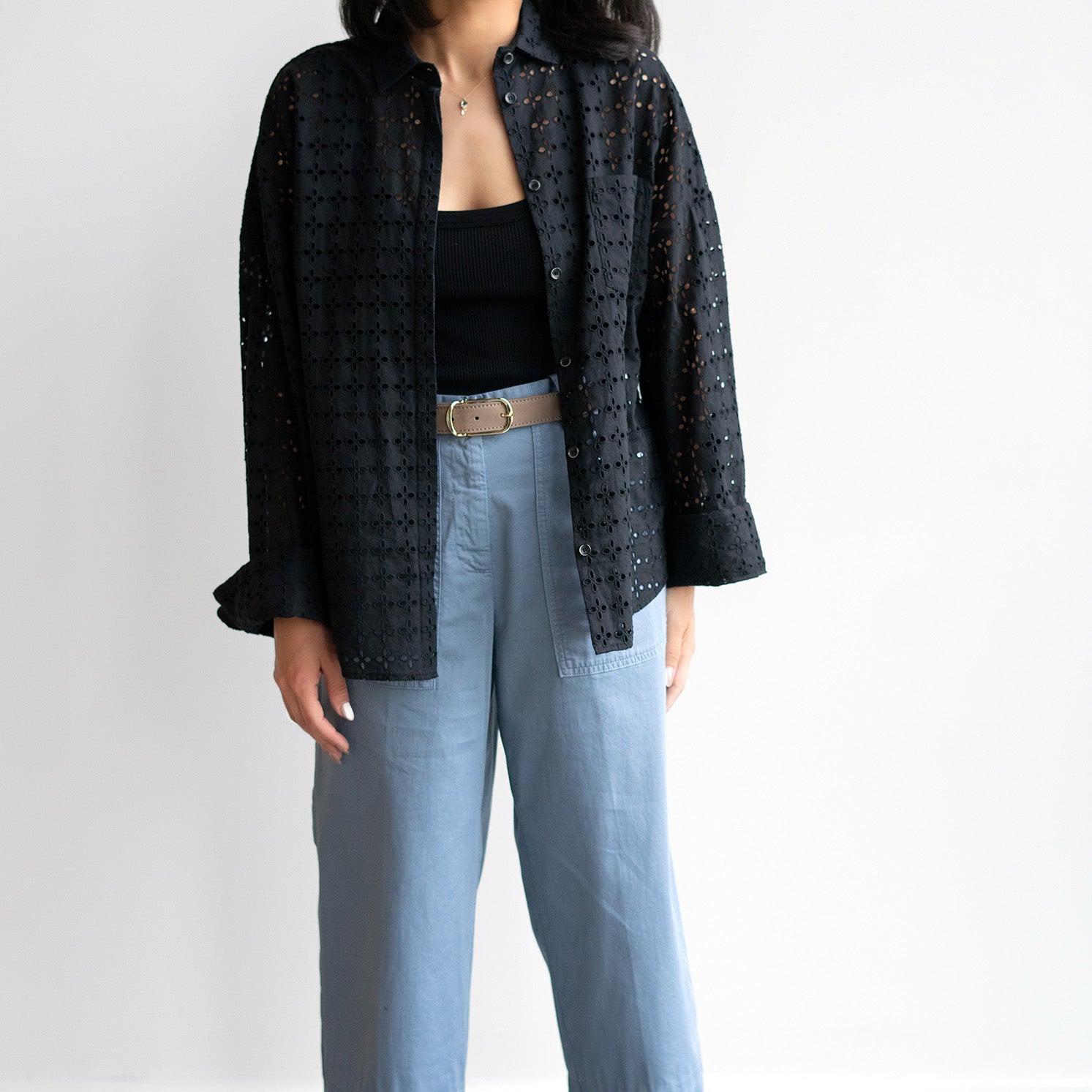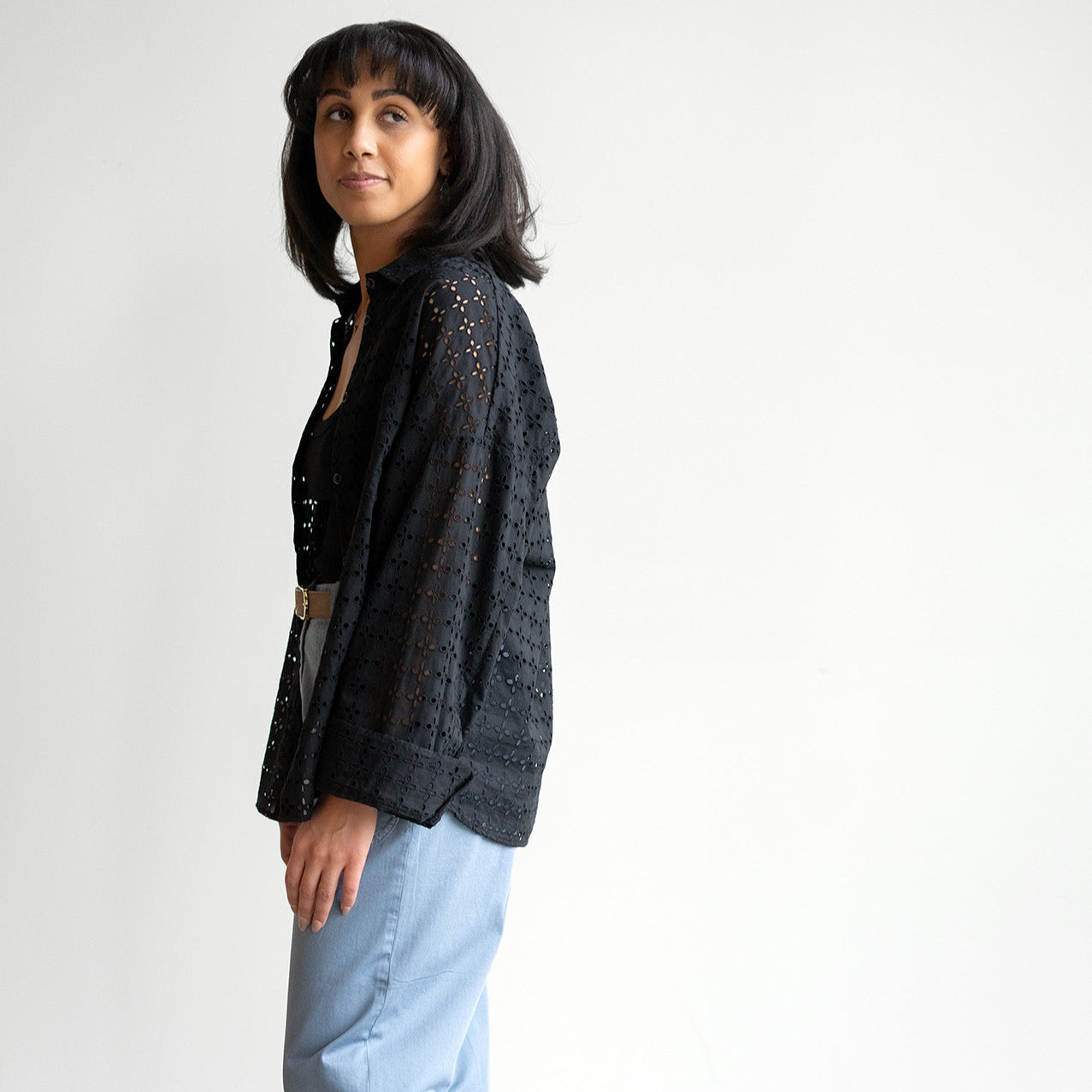 Amanda Eyelet Shirt in Nero