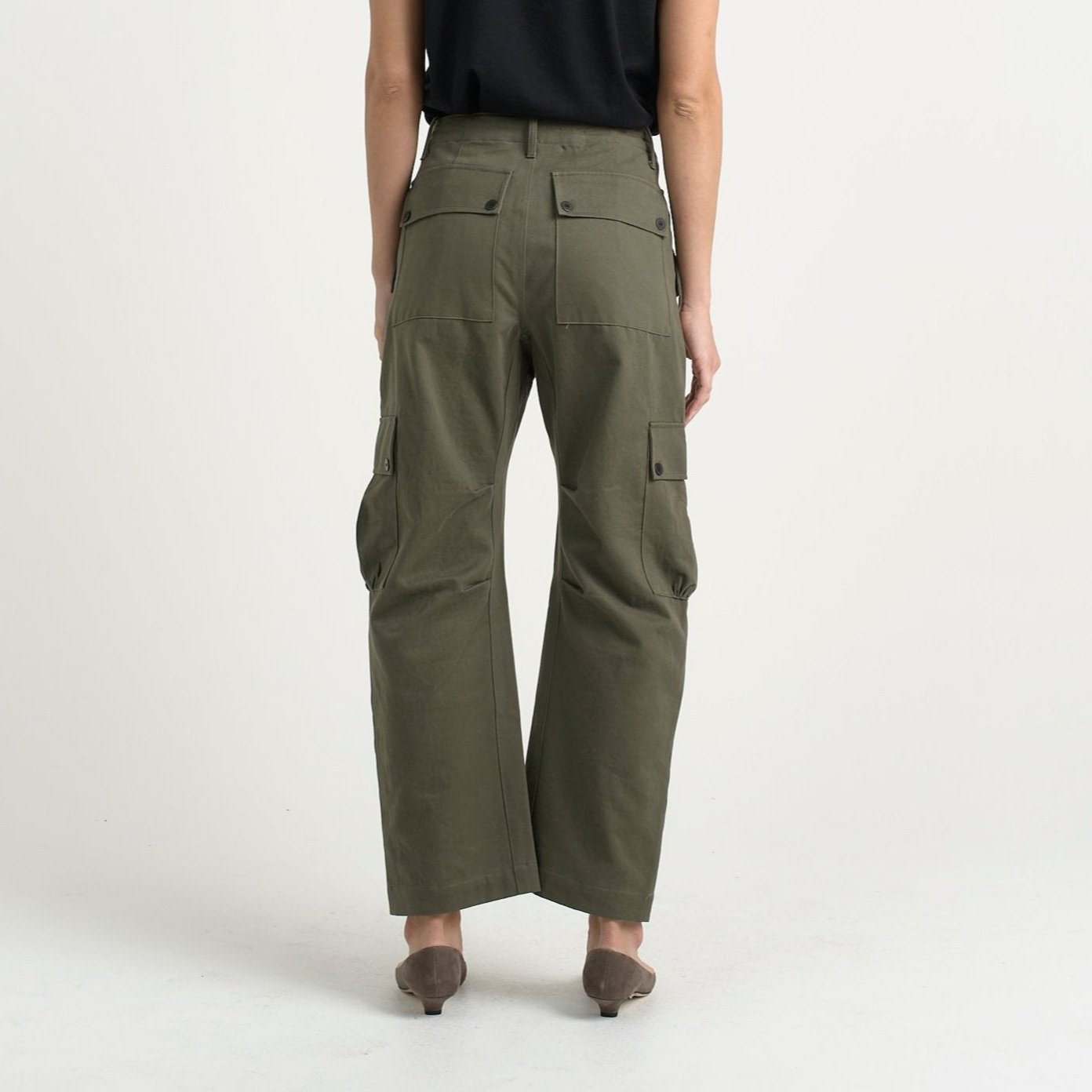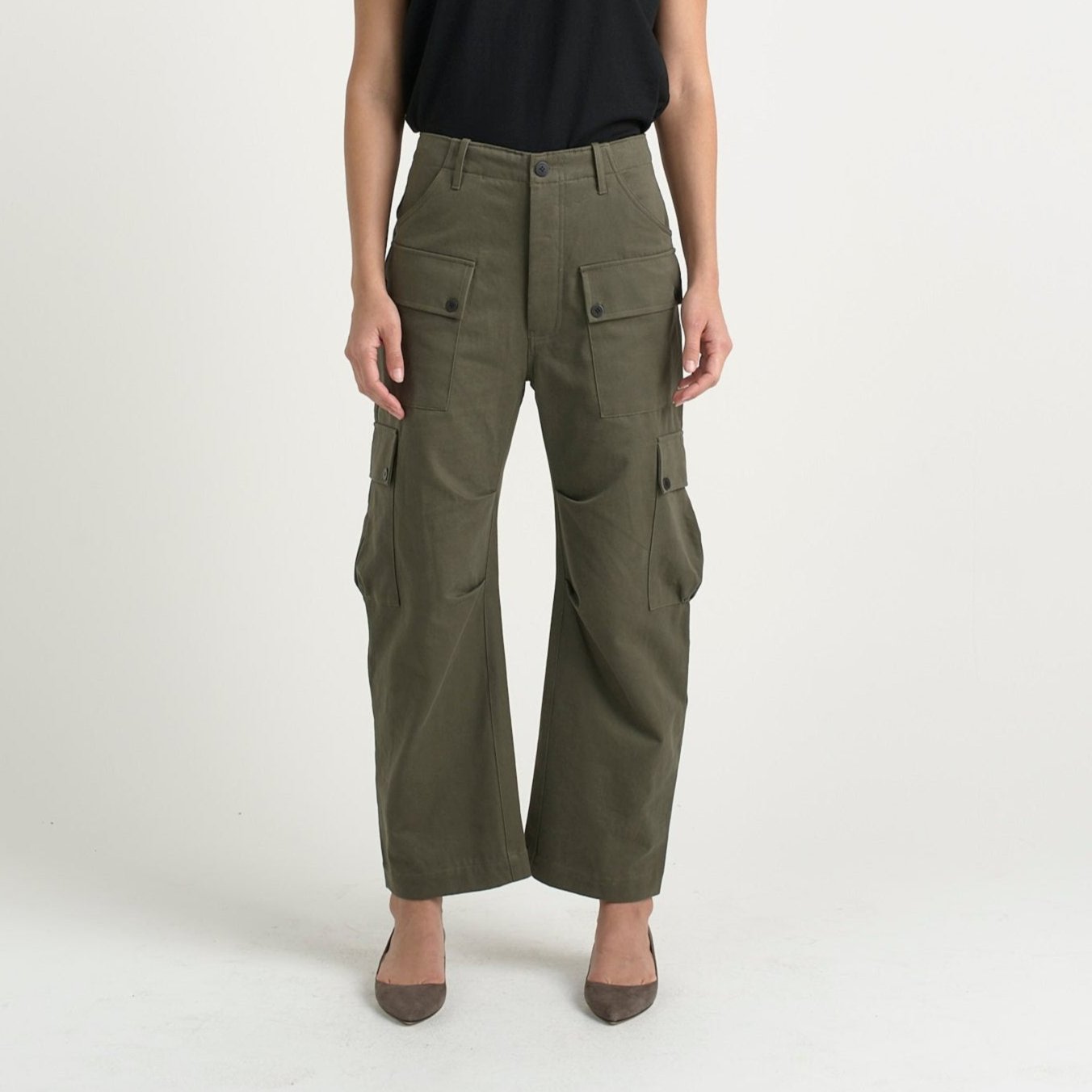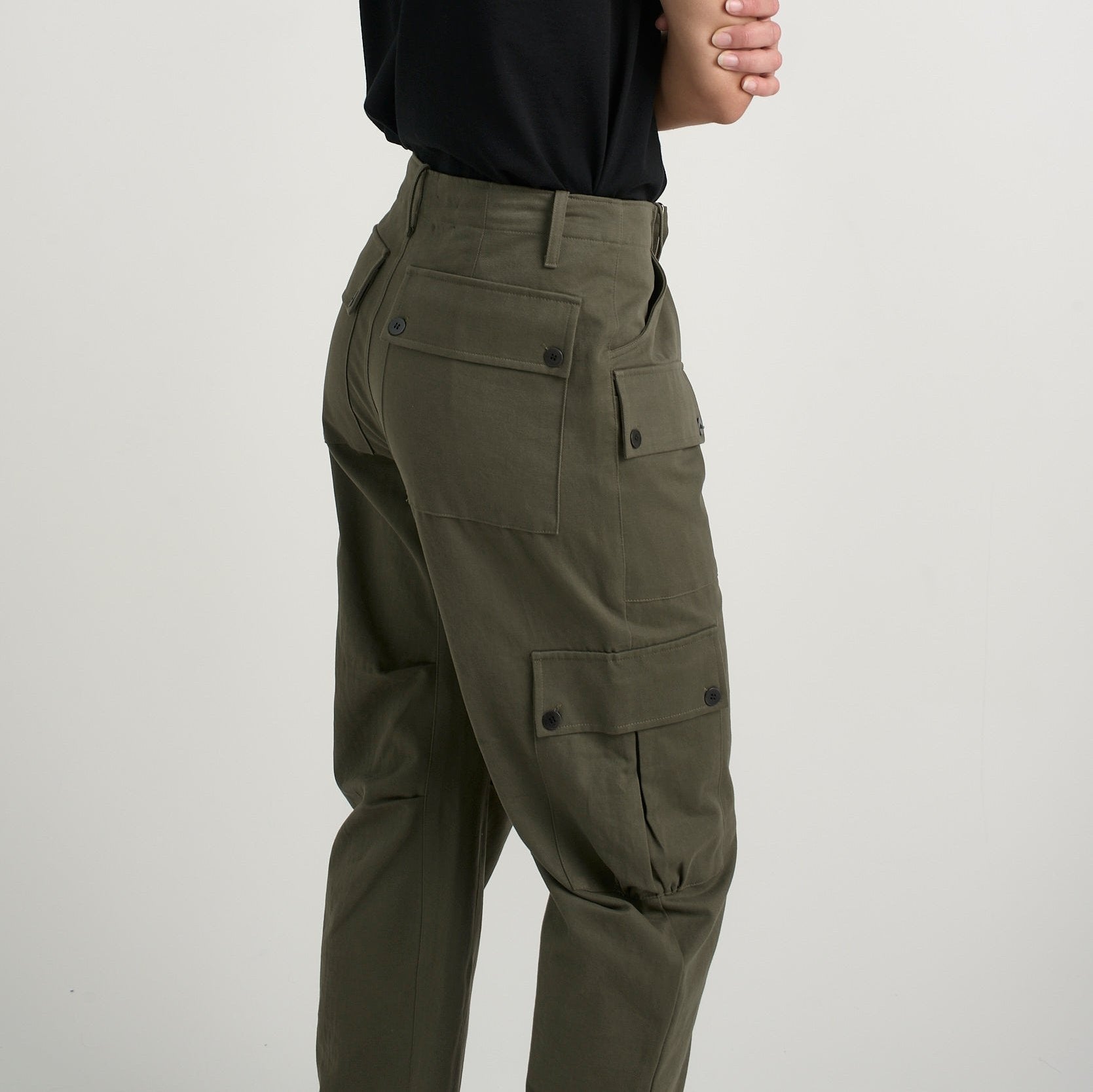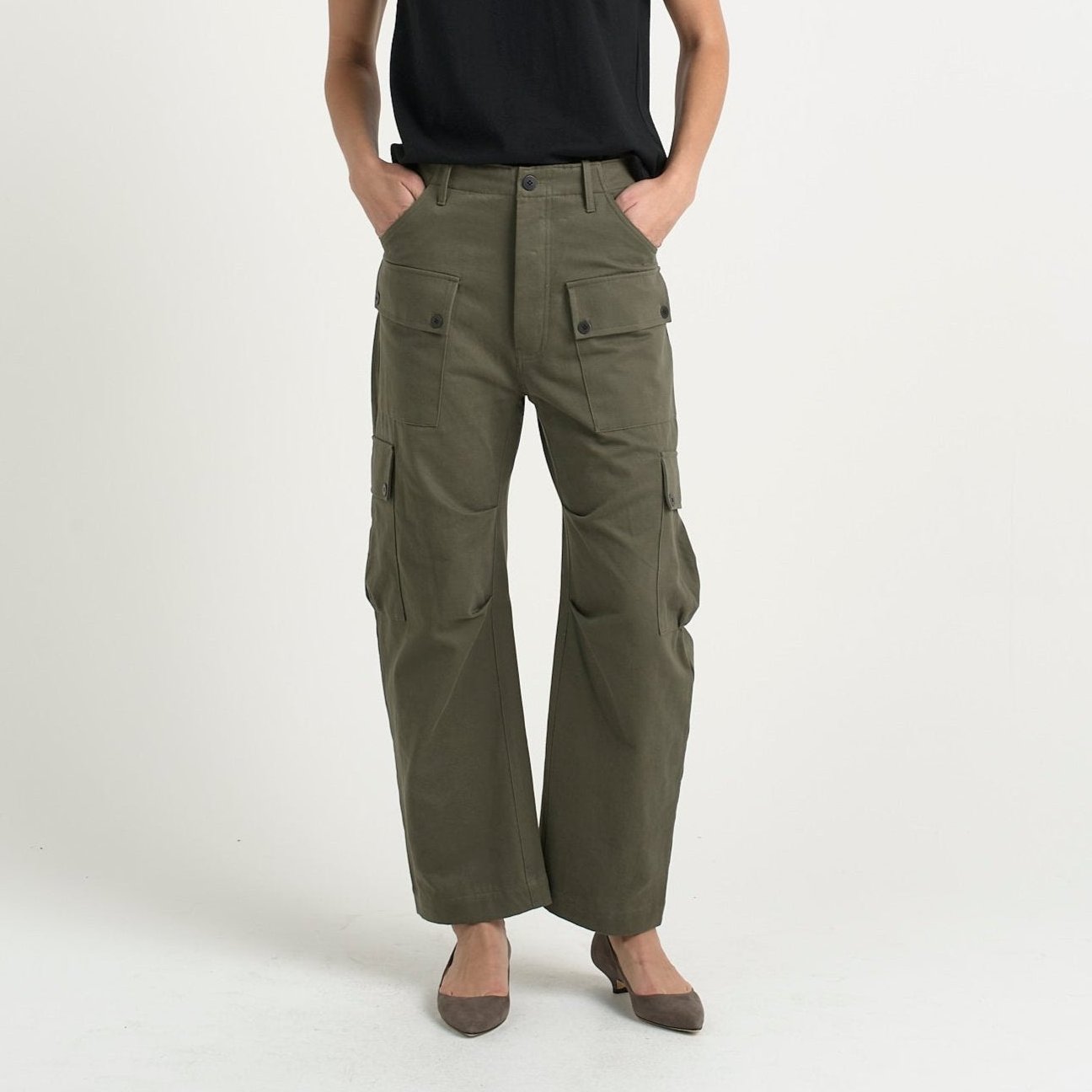 Modern cargo pant that sits loosely at the waist and a just a little slouch