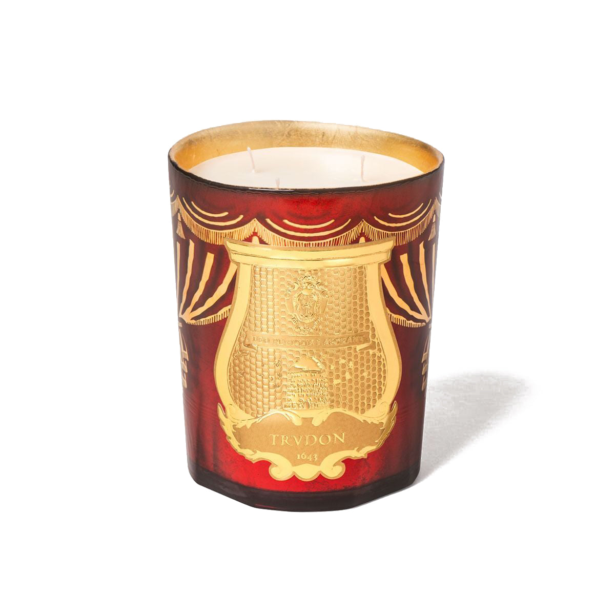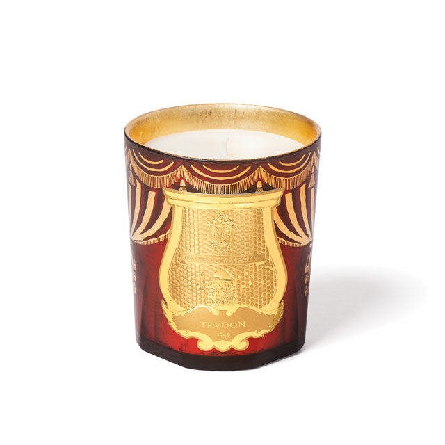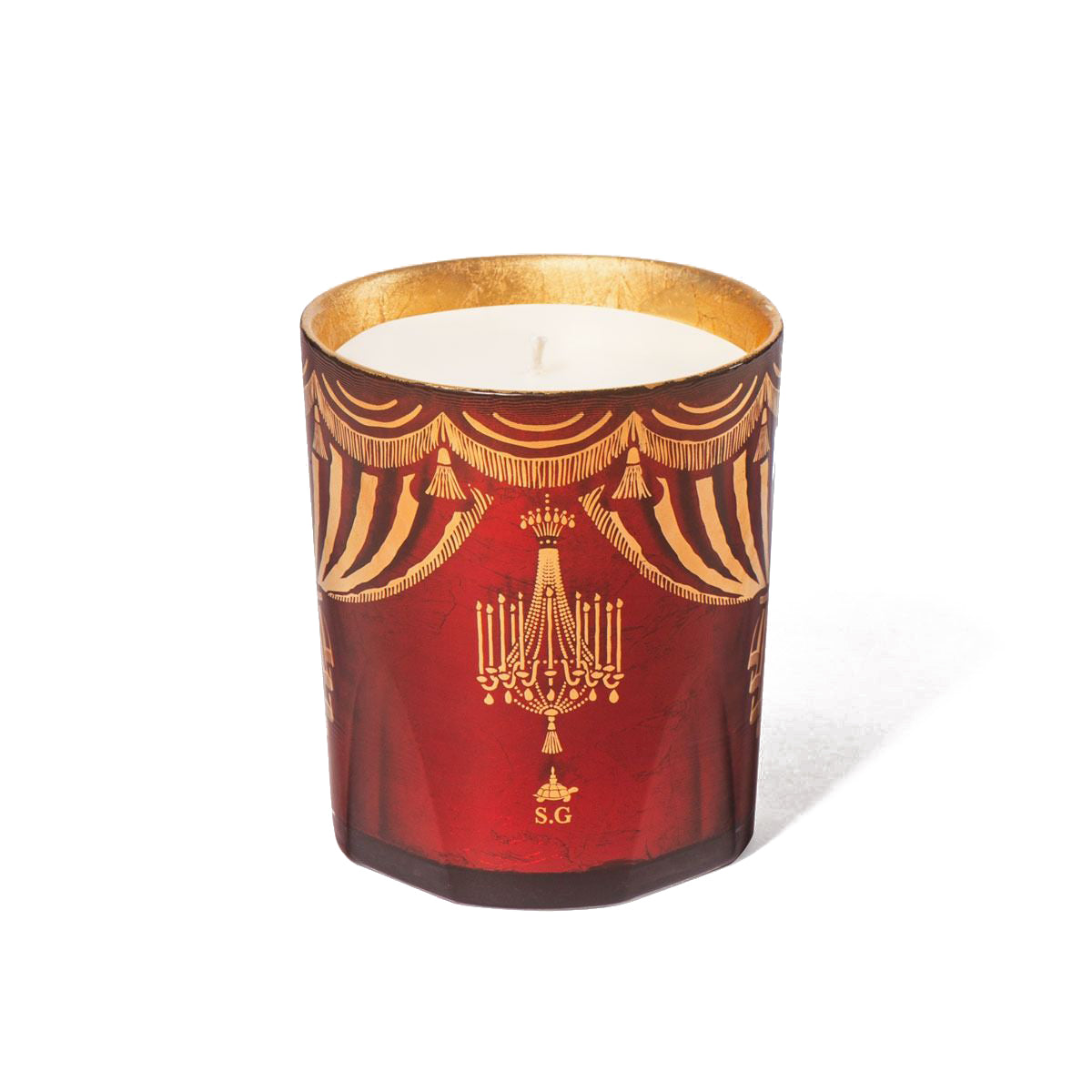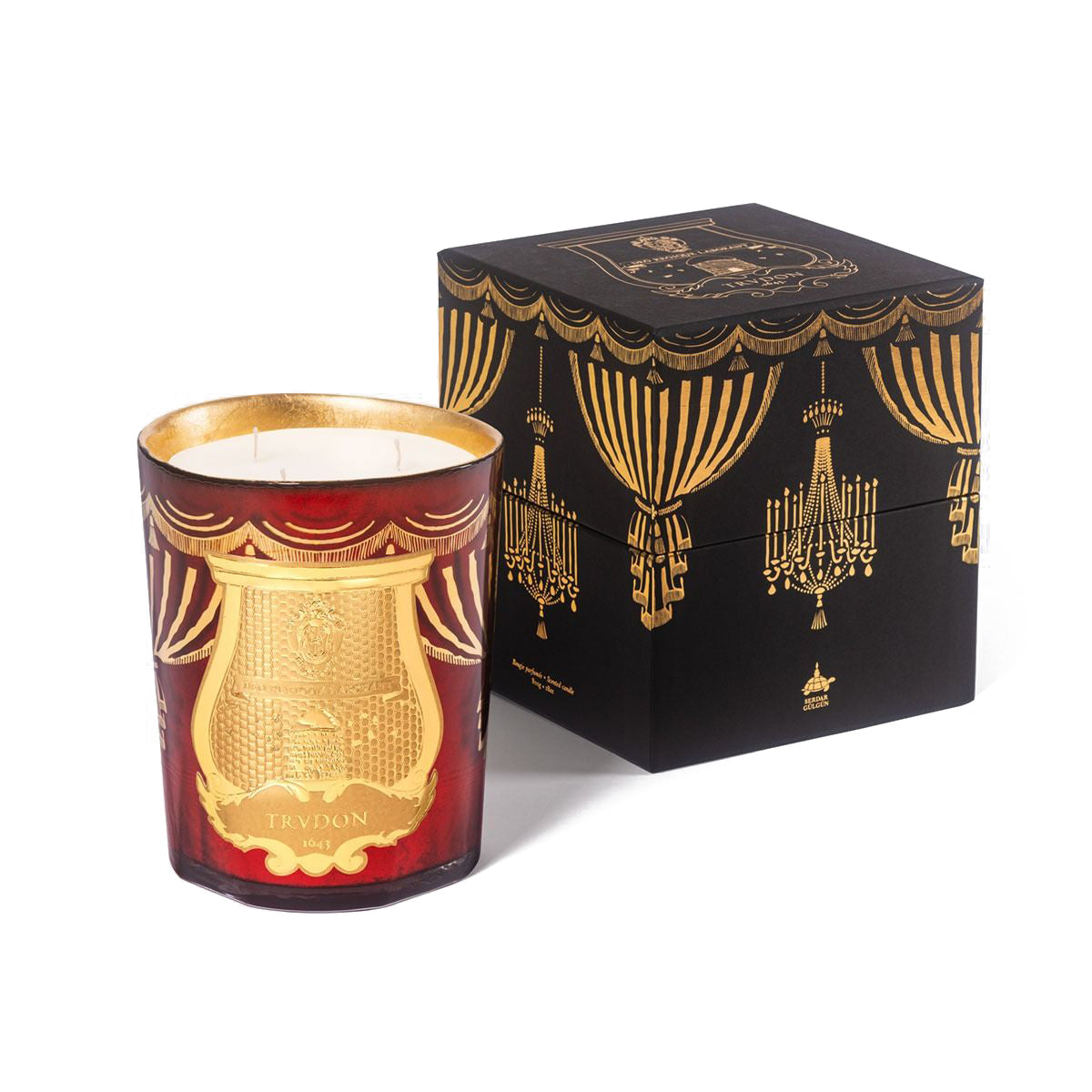 Inspired by the balls and masquerades once held by Louis XV, this candle was manufactured at the Trudon workshop in Normandy, France, using unrivaled know-how inherited from master candle makers. Vessel features 22k yellow gold flake interior and exterior stamping.