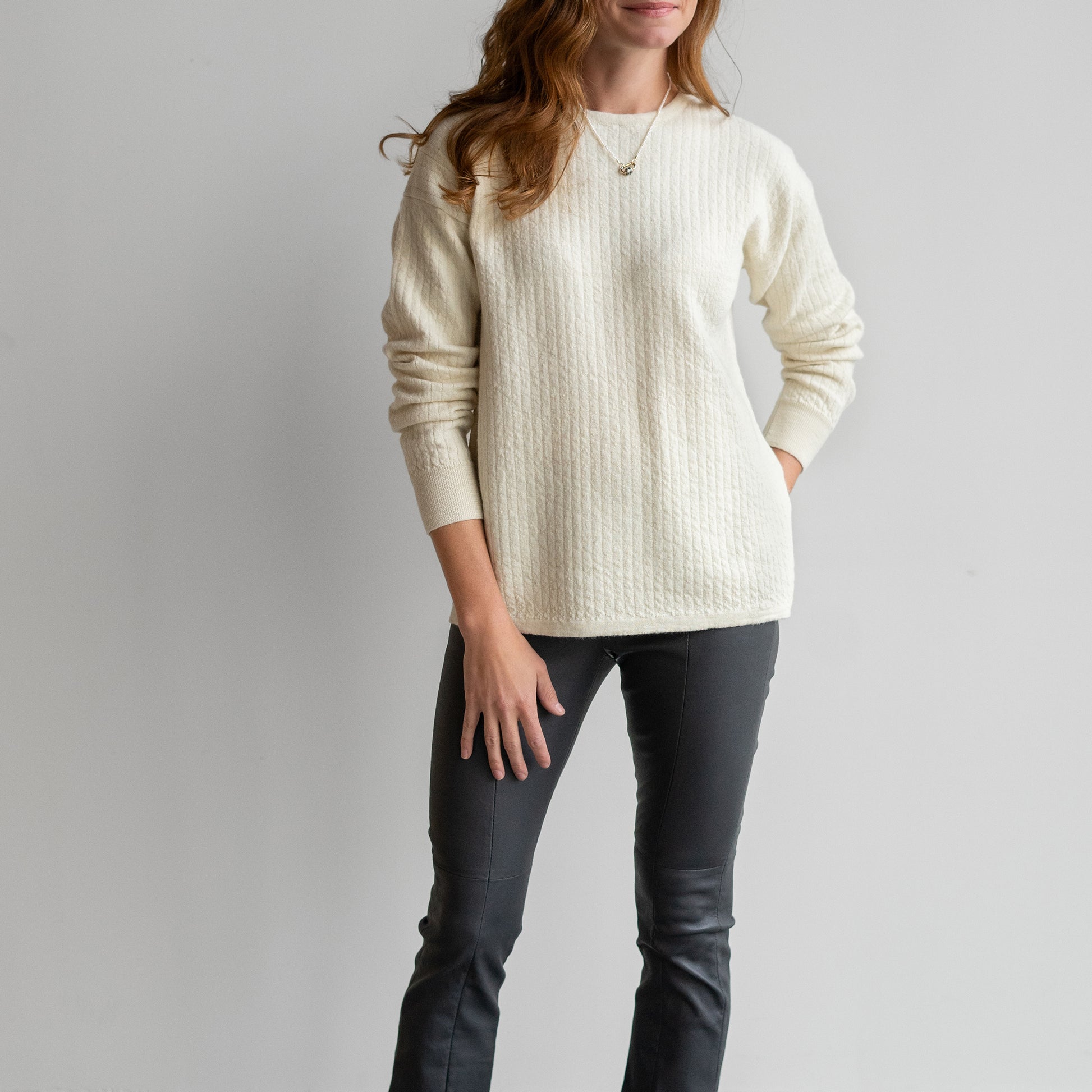 Line Quilt Crew in Raw White