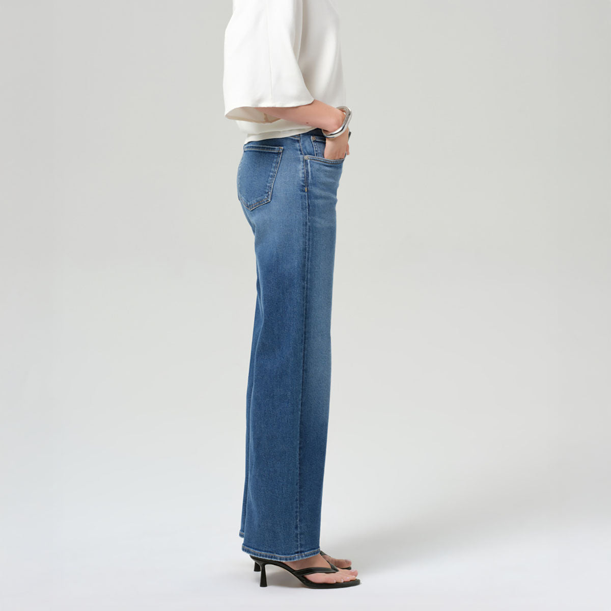 Mid-rise long trouser-inspired denim. Slight barrel shape. Zip fly. Front and back pockets.