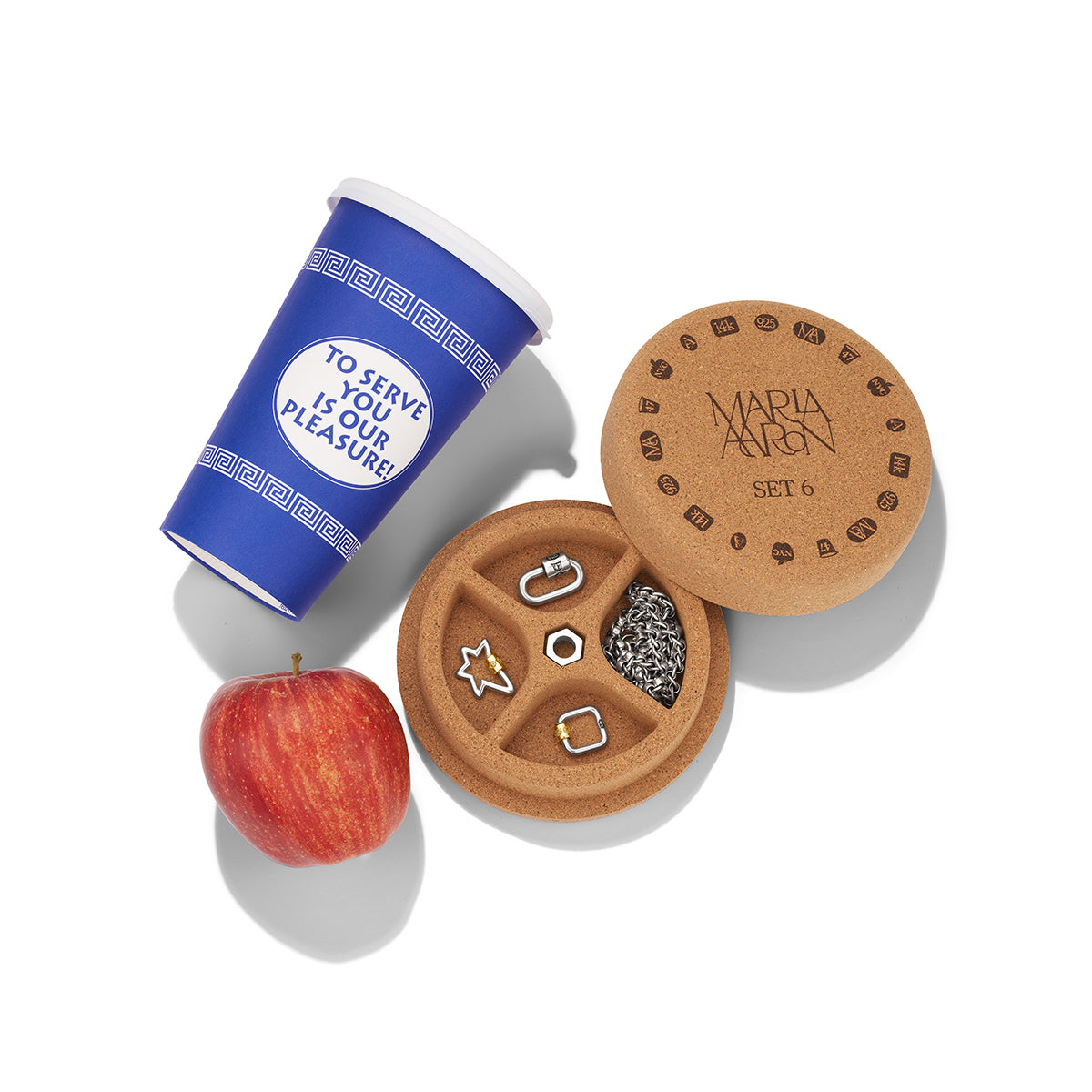 Set 6 comes in a “naturally nice” cork vessel and includes: